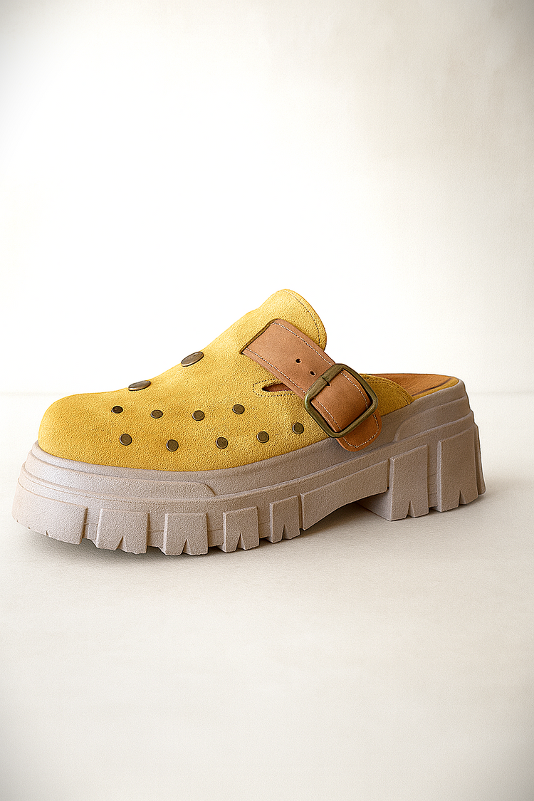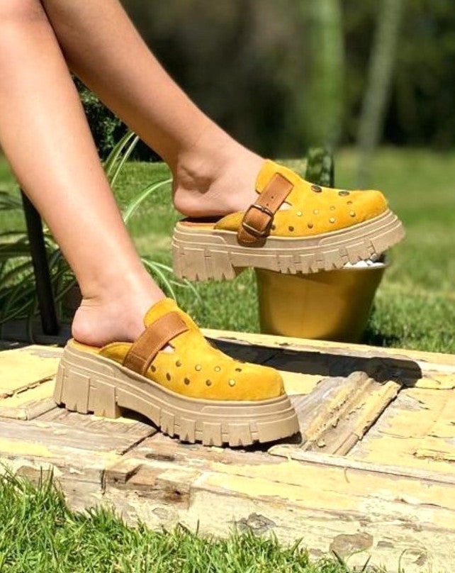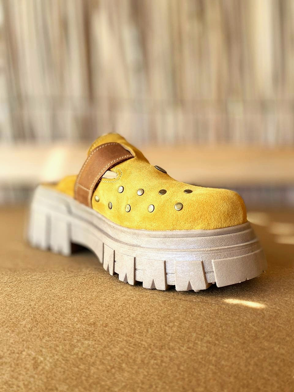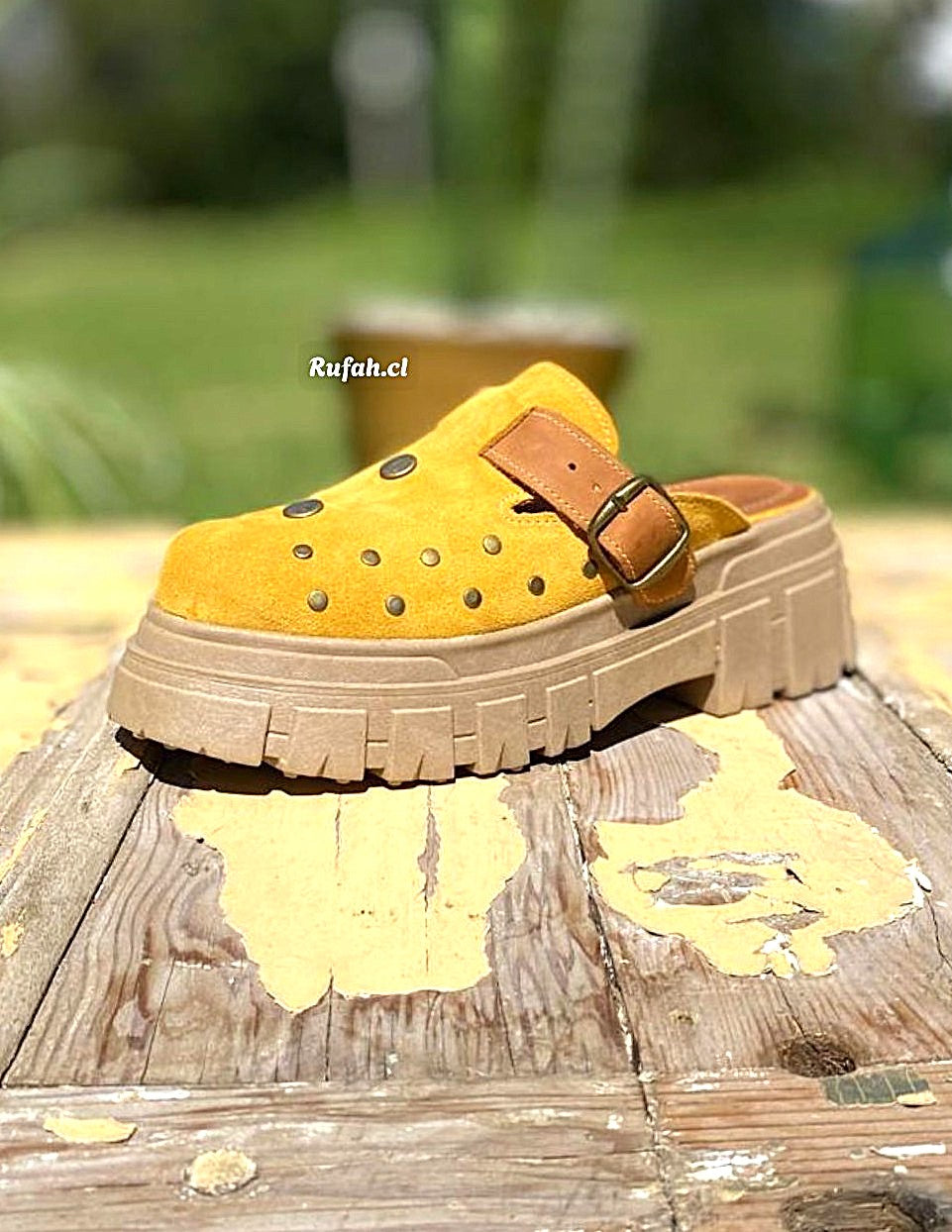 Zueco de cuero natural premium, hecho a mano en Chile, cómodos y versátiles para combinar con cualquier Outfit.